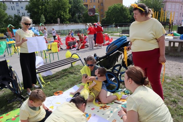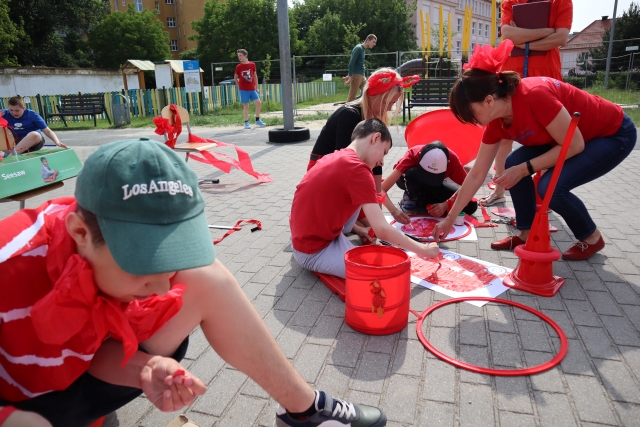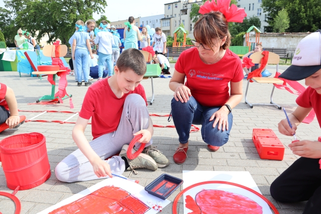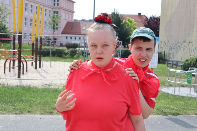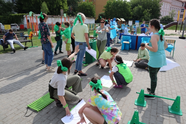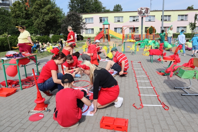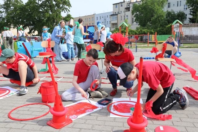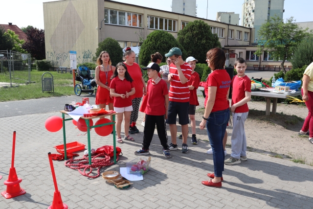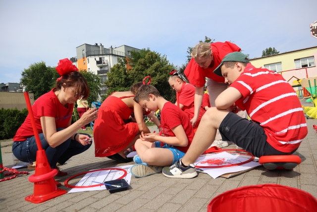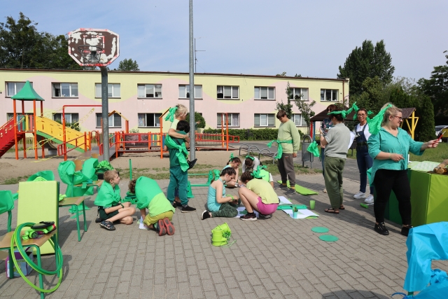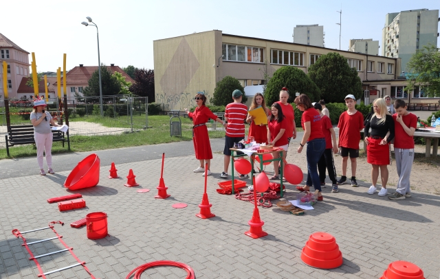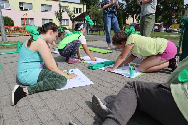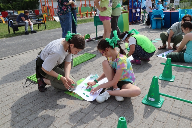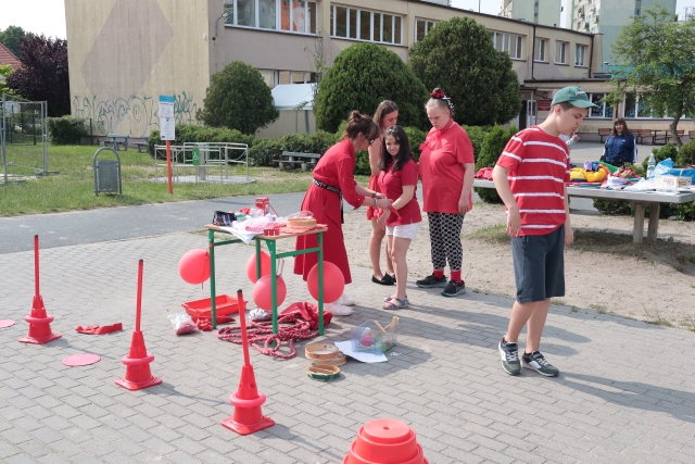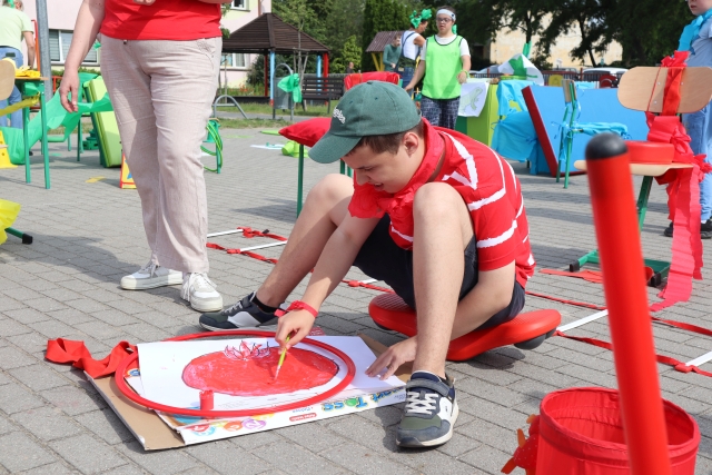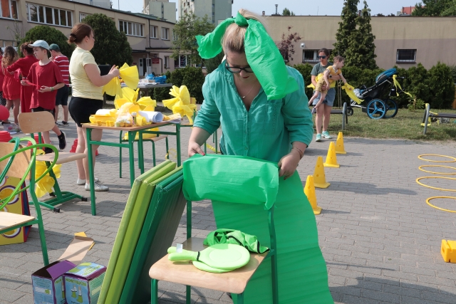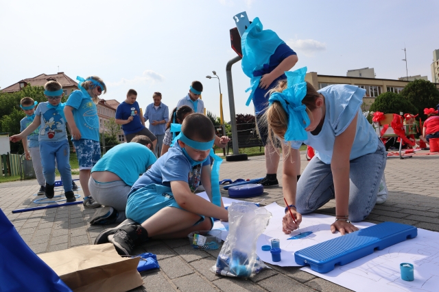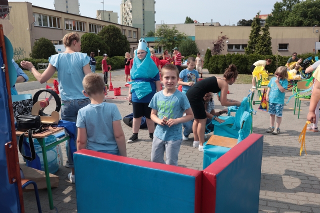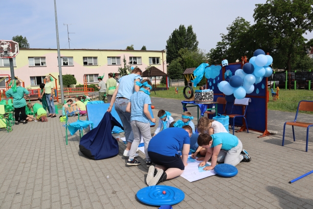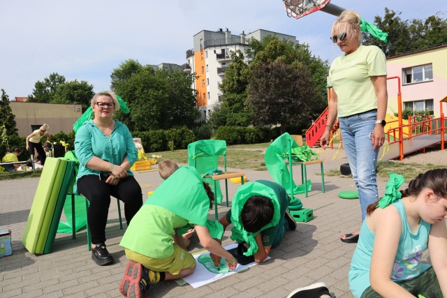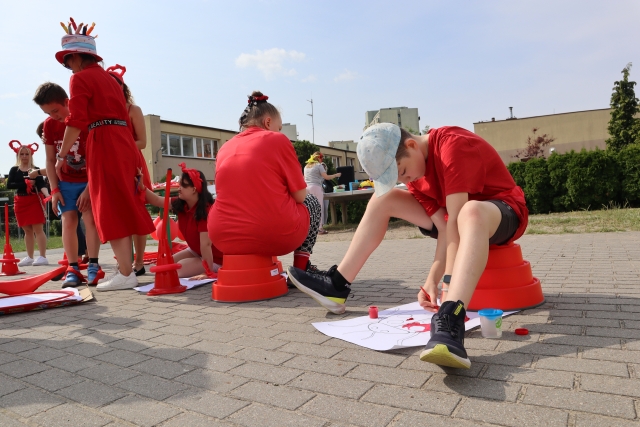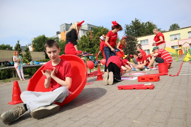 W środę 18. czerwca b.r. uczniowie klas młodszych mieli okazję do wspólnej zabawy integracyjnej o nazwie "Ćwierćland". Uczestnicy zostali podzieleni na cztery grupy (landy) odpowiadające kolorom: zielonemu, niebieskiemu, żółtemu i czerwonemu. Otrzymali do wykonania szereg zadań m.in. dekorowanie swoich landów, wykonanie kolorowego chodnika, ilustracja instrumentalna pogody, pokonanie toru przeszkód. Wspólna zabawa uświadomiła wszystkim, że choć każdy z nas jest inny to łączy nas uśmiech, radość, poszanowanie wartości i godności każdego z osobna.